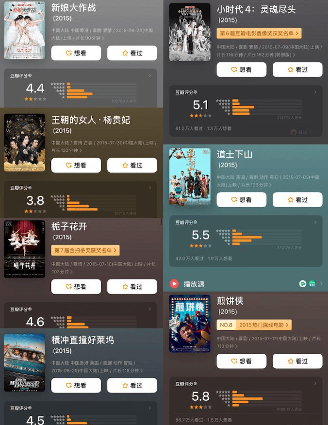 反观2015年的暑期档,票房前十的影片中,仅《西游记之大圣归来》跨过了8分门槛,且整个档期遍布不及格“烂片”,如《小时代4》《栀子花开》《煎饼侠》《新娘大作战》等,简直令人慨叹: