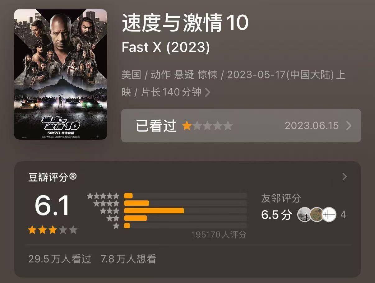 票房从14亿元级别下降至5亿元,豆瓣评分从7.8分一直跌到不及格的5.9分,暑期档的票房排名从第二位降到第五位。